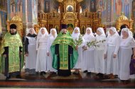 8 июня в День Святой Троицы в храме в честь иконы Божией Матери «Знамение» состоялось праздничное богослужение – Божественная Литургия и Вечерня с коленопреклоненными молитвами. После богослужения священнослужители с прихожанами встречали Крестный ход из Кафедрального собора в честь Воскресения Христова. Вместе перед храмом помолились, прочитали Святое Евангелие и направились к собору. Крестный ход сопровождала соборная молитва под звон колоколов.