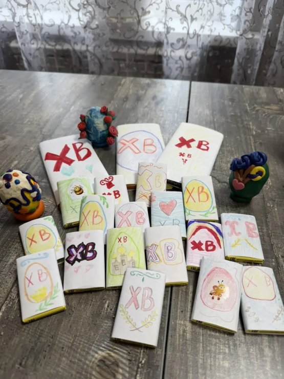 Но на этом занятие не закончилось. Мы решили, что настоящий урок веры обязательно должен выливаться в доброе дело. В этот день наши юные прихожане взяли шоколад и своими руками украсили его в пасхальной тематике: нарисовали куличи, яйца, свечи, написали «Христос Воскресе». Эти сладкие пасхальные подарки будут переданы в православный гуманитарный центр «Твори Добро», а затем - нашим бойцам, которые сейчас вдали от родных, на передовой. Пусть даже маленькая плитка шоколада, украшенная детскими руками и от сердца, напомнит им, что о них помнят, за них молятся и их ждут дома.