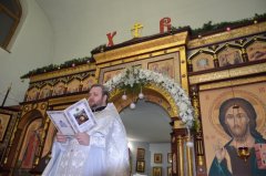 Утром, 7 января 2020 года, в праздник Рождества Христова состоялась Божественная Литургия 2-я, которую совершил настоятель Знаменского храма иерей Леонид Бартков.