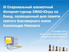 Епархиальный шахматный интернет- турнир по блицу пройдет 7 декабря, он посвящен памяти святого благоверного князя Александра Невского. Кроме популяризации шахмат и пропаганды здорового образа жизни, турнир ставит целью демонстрацию позитивных изменений информационного общества в России и Югре, происходящих благодаря внедрению коммуникативных технологий.