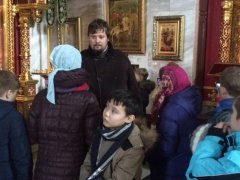 20 февраля 2019 года настоятель Знаменского храма иерей Леонид Бартков провёл экскурсии для учеников МБОУ «Центр образования «Школа-сад № 7».