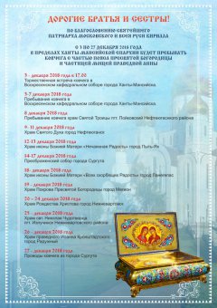 В ПРЕДЕЛАХ ХАНТЫ-МАНСИЙСКОЙ ЕПАРХИИ БУДЕТ ПРЕБЫВАТЬ