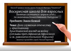 1 апреля 2018 г. по окончании Божественной Литургии будет проводиться занятие Воскресной школы для взрослых.