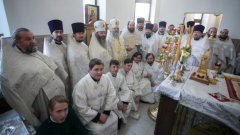Его Высокопреосвященству сослужило духовенство города.