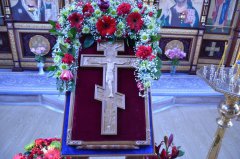 14 августа 2017 года в день памяти Происхождения Честных Древ Животворящего Креста Господня настоятель храма иерей Леонид Бартков совершил Божественную Литургию в храме в честь иконы Божией Матери «Знамение» г. Ханты-Мансийска.