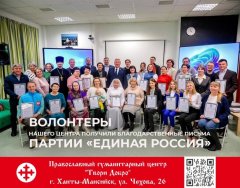 Волонтеры Православного гуманитарного центра "Твори Добро" получили благодарственные письма от партии Единая Россия