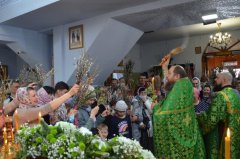 Православные верующие храма в честь иконы Божией Матери «Знамение» встретили Вербное воскресенье.