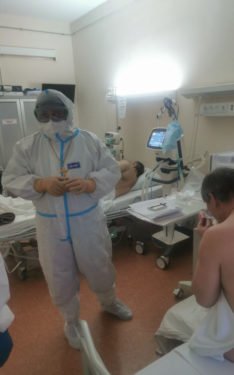 13 февраля, в Ханты-Мансийске, председатель отдела социального служения и благотворительности Ханты-Мансийской епархии иерей Леонид Бартков в сопровождении главного врача ОКБ Елены Ивановны Кутефы посетил реанимацию «красной» зоны.