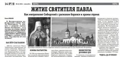 Предлагаем вашему вниманию статью в газете АиФ-Югра / Аргументы и факты - Югра о святителе Павле, митрополите Тобольском Павла Инькова с участием клирика нашего храма иерея Тарасия Борозенца