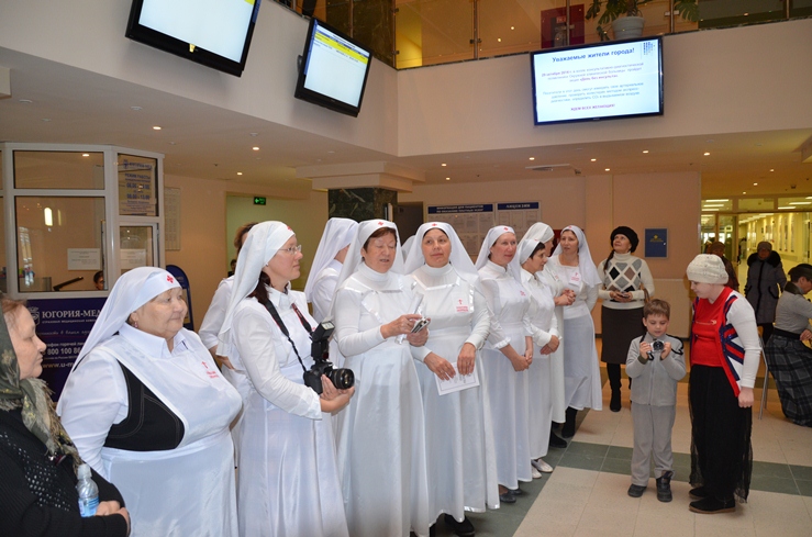 Беря пример с них, современные сестры милосердия бескорыстно трудятся, ухаживают за больными в ОКБ г.Ханты-Мансийск, несут Слово Божие, утешают по мере сил страждущих, помогают священникам подготовить больных к Таинствам Исповеди, Елеосвящения и Причащения Святых Христовых Таин.