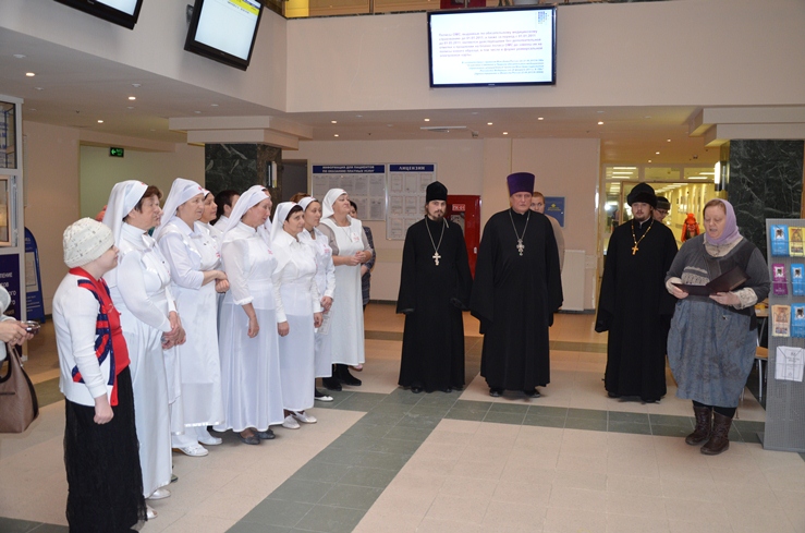 Священники, окормляющие болящих и самих сестер милосердия, поздравили их с памятной датой, напомнили историю создания сестричества в нашем городе, поблагодарили и пожелали Божией помощи и терпения в дальнейшем служении на этом поприще. Также поблагодарили руководство окружной больницы за возможность помогать духовно и телесно нуждающихся в этом болящих.