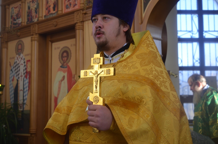 Клирики храма, иерей Леонид Бартков и иерей Константин Мемячкин, поздравили прихожан с Воскресным днем и с Престольным праздником.