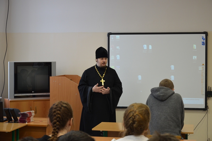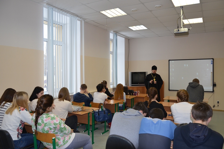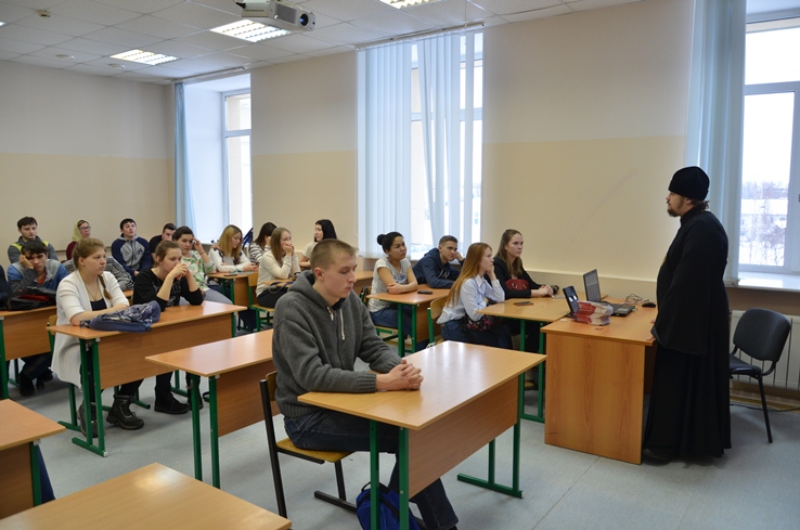 27 февраля настоятель храма в честь иконы Божией Матери «Знамение» г. Ханты-Мансийска иерей Леонид Бартков в очередной раз провел беседу со студентами Ханты-Мансийского технолого‑педагогического колледжа. Беседа была о смысле жизни человека и цели создания семьи.