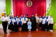 В заключительной части торжества со словами поздравления и благодарности также обратились настоятель Знаменского храма иерей Леонид Бартков и директор МБОУ «Центр образования №7 им.Дунина-Горкавича А.А.» Ксения Геннадьевна Букренева.