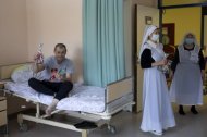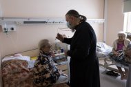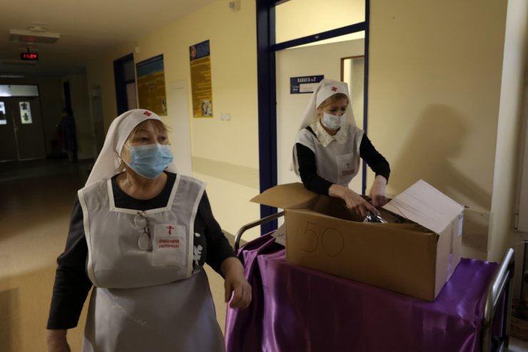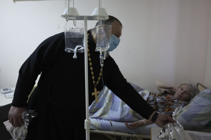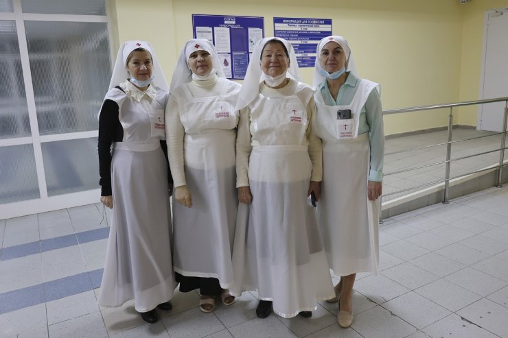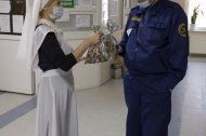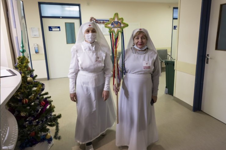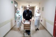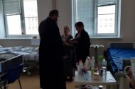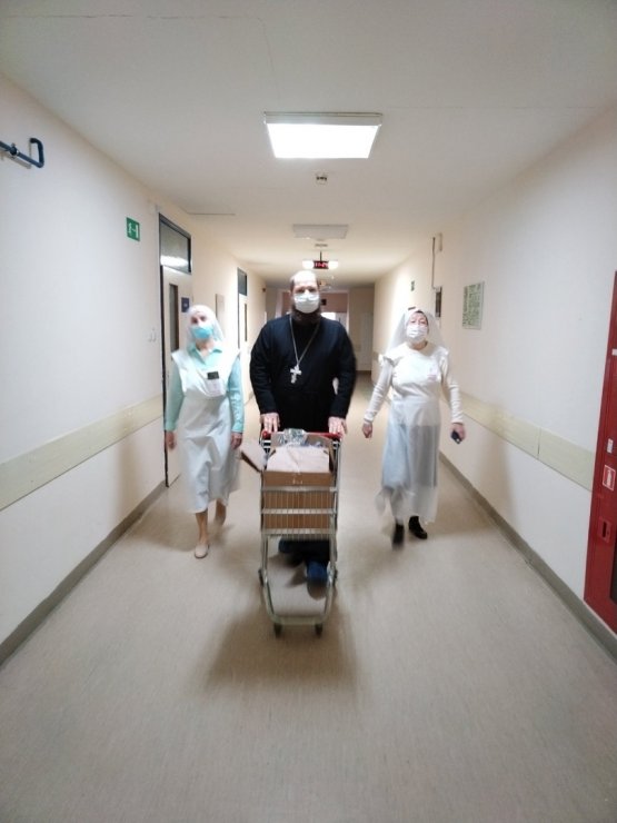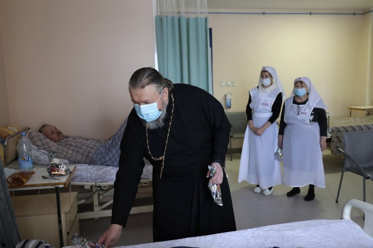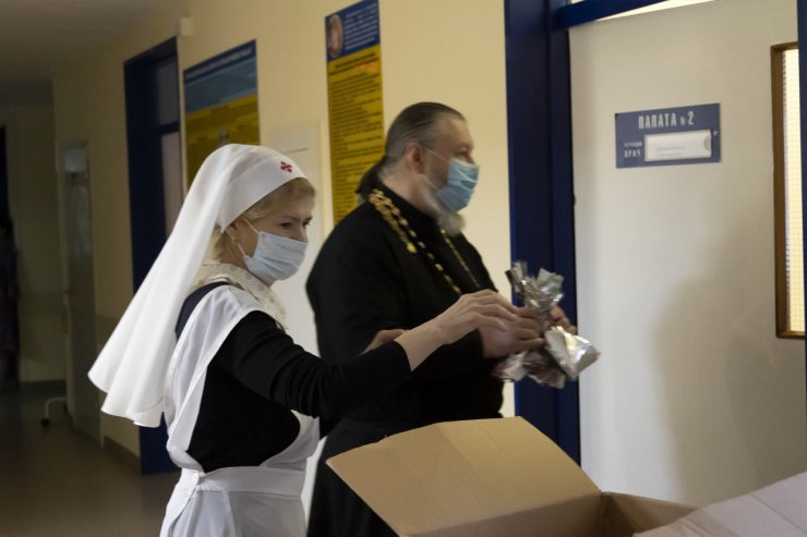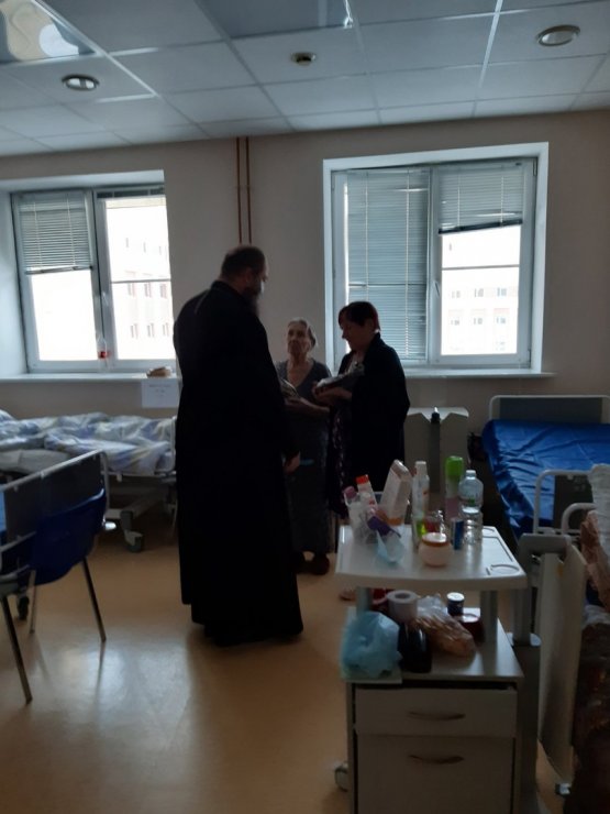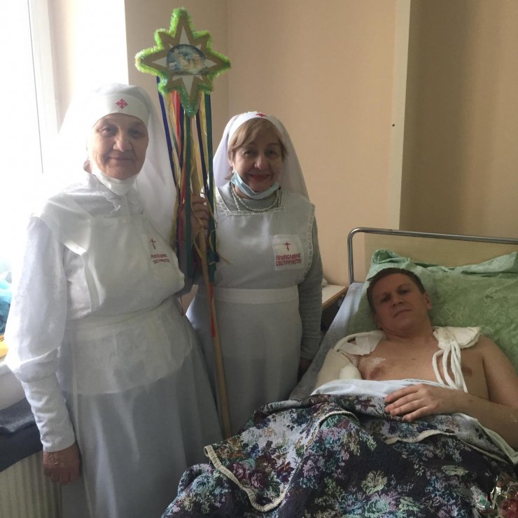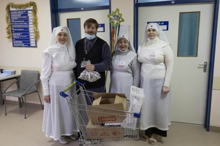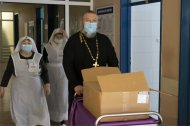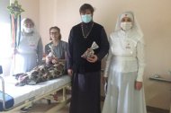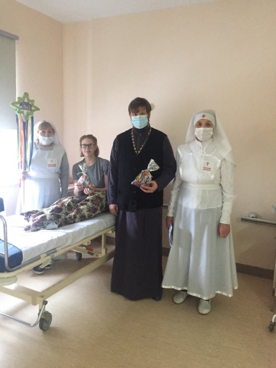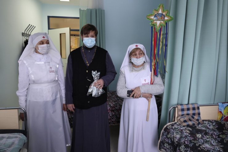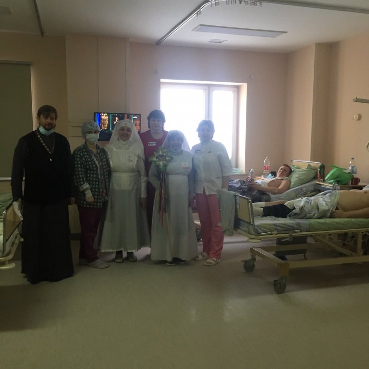 8 января 2022 г. настоятель Знаменского храма иерей Леонид Бартков в сопровождении сестер милосердия поздравили со светлым праздником Рождества Христова персонал и пациентов Окружной клинической больницы.