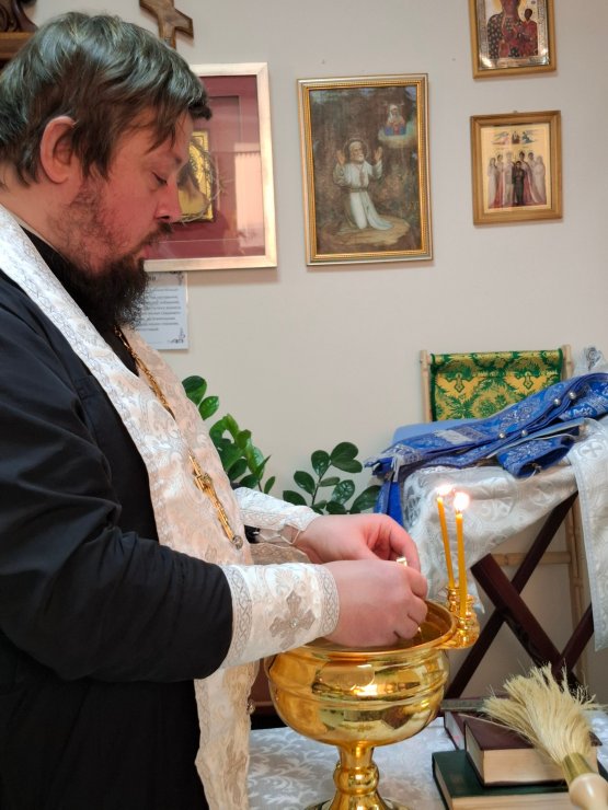 18 января 2026 года, после Божественной литургии и чина Великого освящения воды в Знаменском храме, наш настоятель иерей Леонид Бартков отправился в особое место — в часовню в честь святых преподобномучениц Великой княгини Елисаветы и инокини Варвары, которая находится в Окружной клинической больнице нашего города.