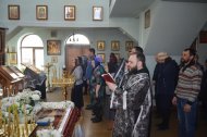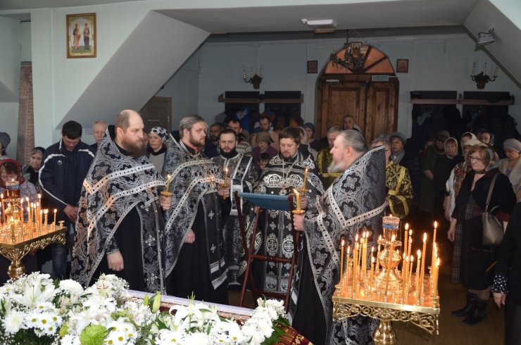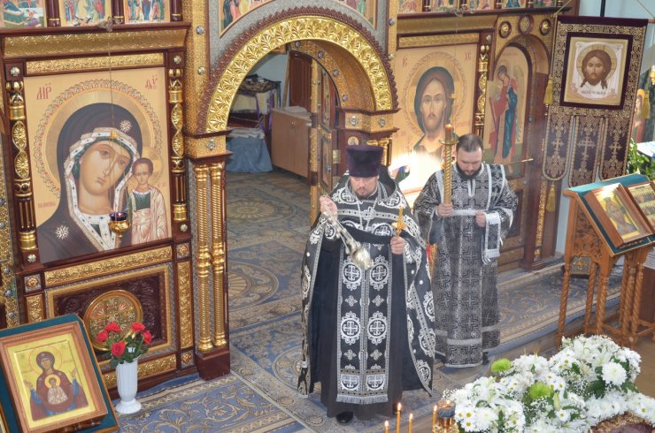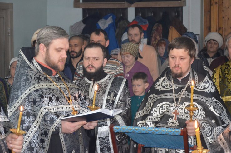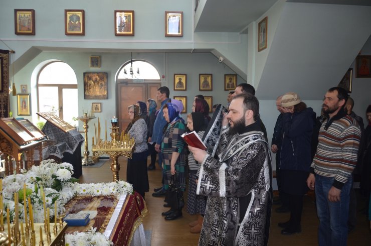 Вечером 26 апреля в храме в честь иконы Божией Матери «Знамение» г. Ханты-Мансийска состоялось Богослужение с чином погребения святой Плащаницы, которую возглавил настоятель прихода храма иерей Леонид Бартков. Его Преподобию сослужили клирики храма.