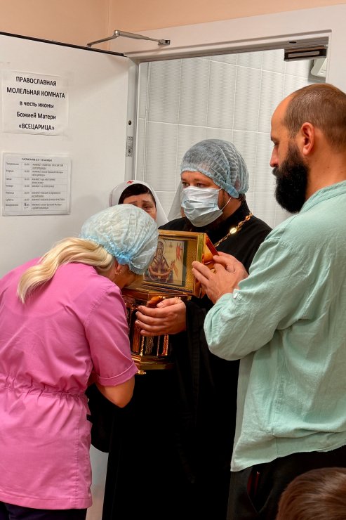 Затем святыня была перенесена в молельную комнату в честь иконы Божией Матери «Всецарица» в онкологическом центре больницы. Пациенты и их близкие, проходящие через тяжелейшие испытания, с верой и слезами приклонялись к Поясу Богородицы, вверяя Ей свое здоровье и жизнь.