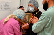 Вечером, после совершения торжественного молебна с акафистом, председатель Отдела социального служения и благотворительности, настоятель Знаменского храма иерей Леонид Бартков торжественно перевез святыню из Покровского храма в часовню святых преподобномучениц Великой княгини Елисаветы и инокини Варвары, расположенную на территории Окружной клинической больницы. Здесь, в тишине и благоговении, пациенты стационара, медицинский персонал и их родственники смогли в частном порядке приложиться к святыне и излить свои скорби в молитве к Царице Небесной.