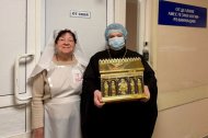 Но на этом путь милосердия не завершился. По особому благословению, отец Леонид пронес святыню по двум отделениям реанимации. Врачи и медсестры, несущие свой тяжелый крест служения, а также находящиеся в сознании пациенты получили уникальную возможность помолиться перед великой святыней прямо у своих постелей, ощутив реальность Божьего присутствия и заступничества Пресвятой Богородицы в самый трудный час.