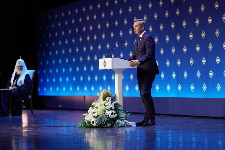 Затем Святейший Патриарх Московский и всея Руси Кирилл обратился со словом к участникам торжественного собрания.