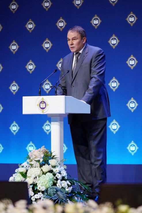 Заместитель председателя Государственной Думы ФС РФ Петр Толстой огласил приветствие председателя нижней палаты Российского парламента Вячеслава Володина.