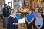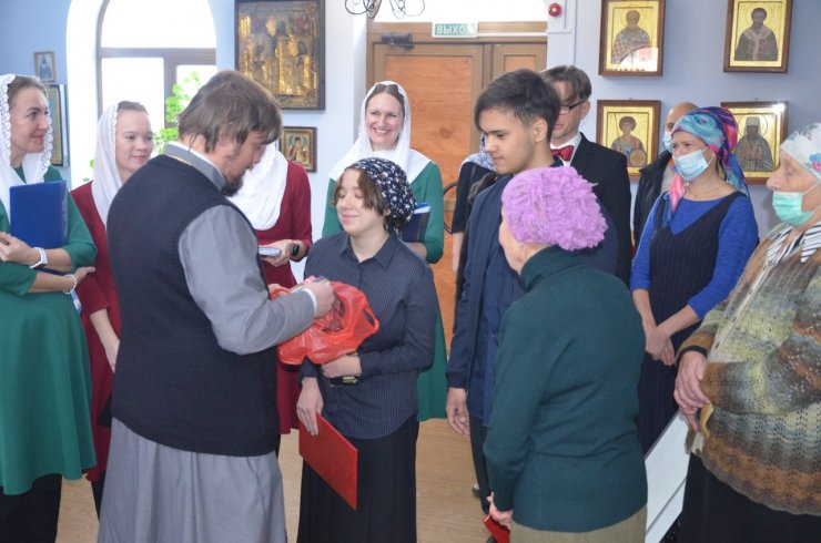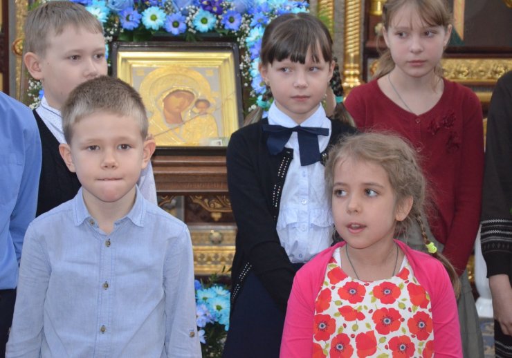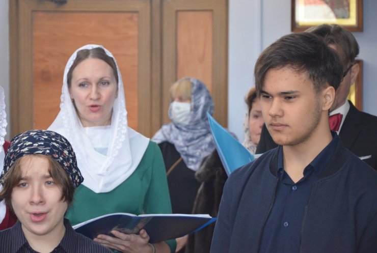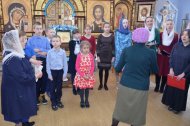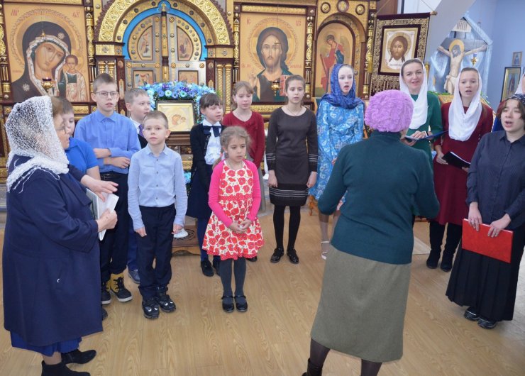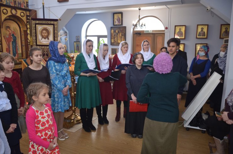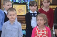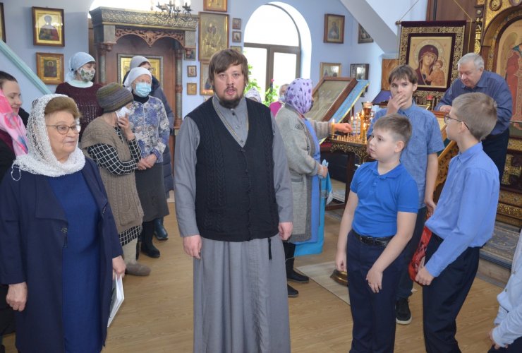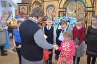 , в служении клирика иерея Андрея Зотова, состоялось поздравление для прихожан, гостей города учащимися, педагогами воскресной учебно-воспитательной группы, православной молодежью, посвященное праздничным мероприятиям.