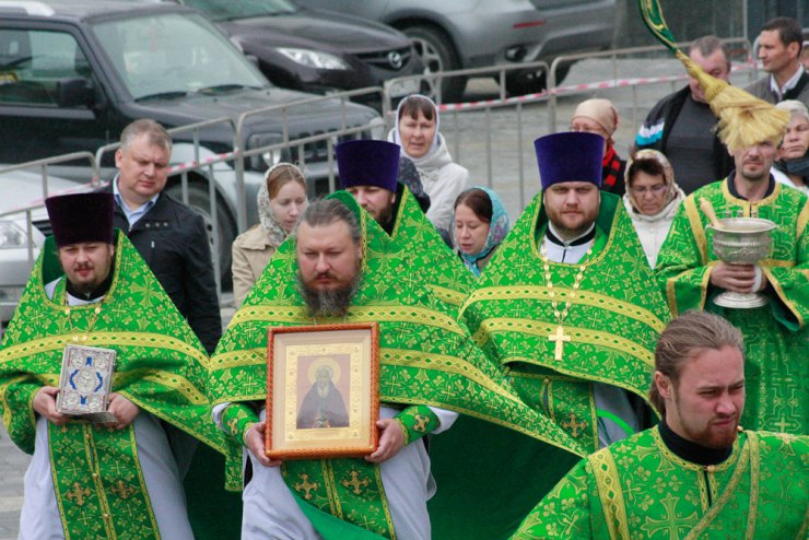 По окончании литургии духовенство и верующие крестным ходом обошли вокруг Кафедрального Собора, получив, несмотря на дождь и сильный ветер, большую духовную радость и вознося молитвы великому просветителю и собирателю Руси- преподобному Сергию Радонежскому. В эти дни 700-от летие святого широко отмечается по всей России, и особо -в Троицко-Сергиевой лавре -обители преподобного, где богослужения возглавляет Патриарх Московский и Всея Руси Кирилл. В торжествах принимает участие и управляющий Ханты-Мансийской епархией, епископ Ханты-Мансийский и Сургутский Павел.