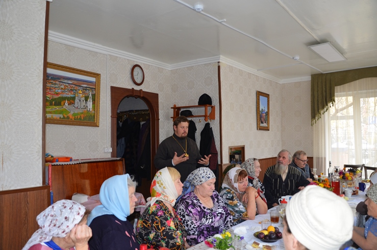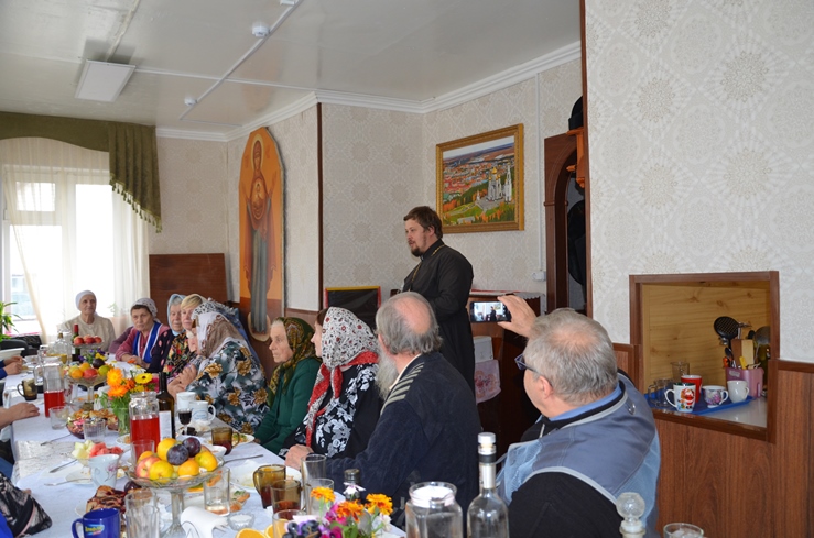 Теплыми словами к присутствующим (27 человек) и со словами благодарности к настоятелю обратилась Татьяна Константиновна Баженова, ныне педагог воскресной школы при храме; алтарники  храма Николай Захарович Косыгин и Олег Васильевич Вторушин.