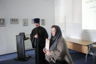 В завершение встречи, бессменный организатор дней православной книги, главный библиотекарь Государственной библиотеки Югры Светлана Берендеева была отмечена грамотой прихода Знаменского храма Ханты-Мансийска, вручил которую его настоятель, иерей Леонид Бартков.