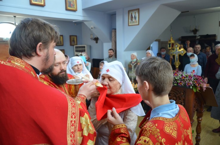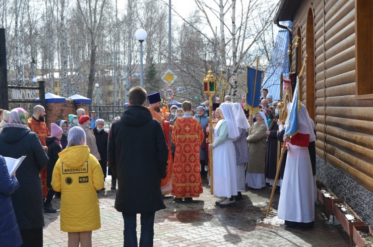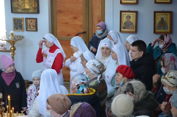 По завершения Богослужения прошёл традиционный «Крестный ход» вокруг храма, сестры милосердия несли впереди хоругви с крестом, символизируя тем самым и самих Жен-Мироносиц. Всем молящимся на Богослужении женщинам, девушкам и девочкам в конце были вручены: цветок и сладкий подарок в виде шоколадки.