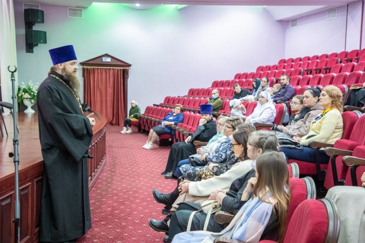 Представители епархии рассказали собравшимся о деятельности Духовно- просветительского центра, о социальной деятельности епархии, о работе центра «Твори добро» (выступила заведующая данного центра Колычева Ирина Геннадьевна), о разработке на сайте Духовно-просветительского центра раздела по оказанию взаимопомощи семьям участников СВО.