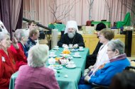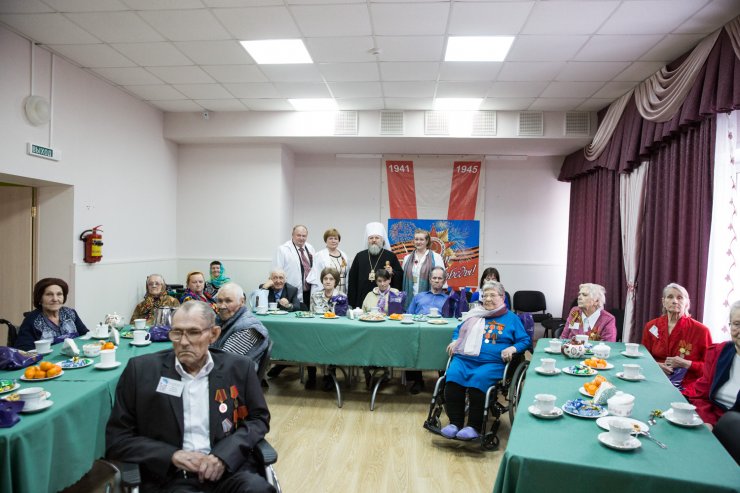 В актовом зале дома «Уют» состоялось чаепитие митрополита Павла с ветеранами и тружениками тыла, по окончанию которого Владыка посетил молитвенную комнату в честь пророка Божия Илии, расположенную в доме-интернате «Уют».