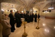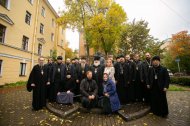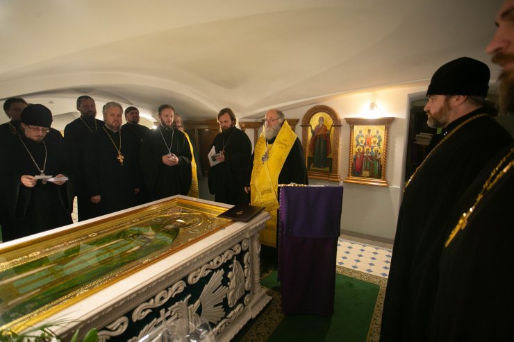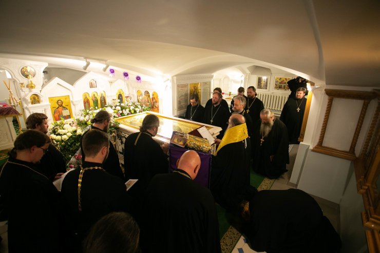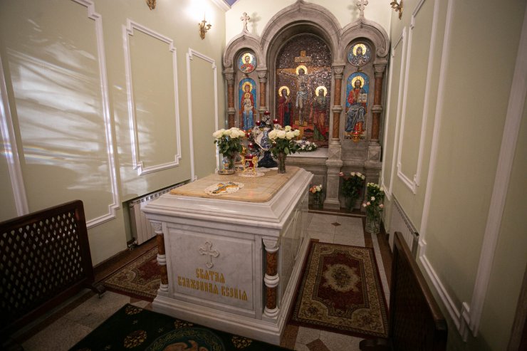 Также общую молитву паломники совершили на Смоленском кладбище, в часовне, где покоятся мощи святой блаженной Ксении Петербургский.