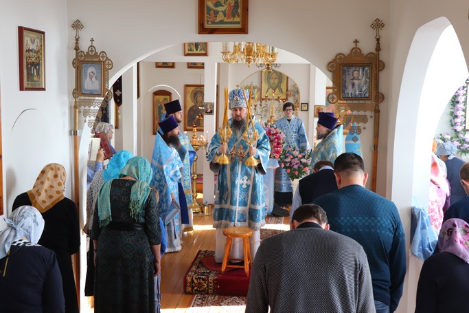 27 марта 2019 г. в престольный праздник Югорского храма в честь иконы Божией Матери «Феодоровская», епископ Югорский и Няганский Фотий совершил здесь Литургию Преждеосвященных Даров.