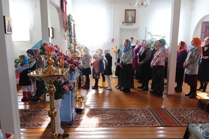 По окончании Литургии Преждеосвященных Даров было совершено славословие и молебен Пресвятой Богородице перед Её иконой «Феодоровская».