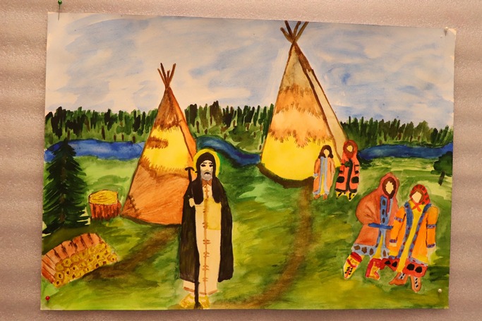 Затем владыка Фотий вместе с гостями осмотрел выставки рисунков и поделки учеников Воскресной школы храма.