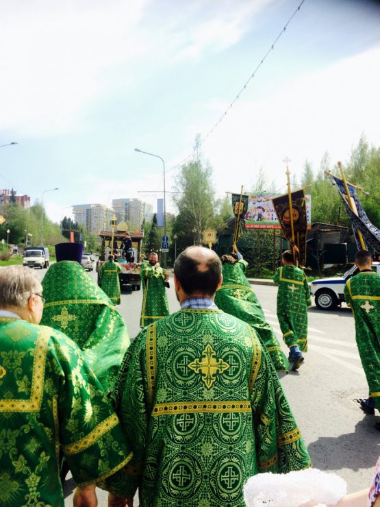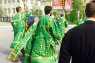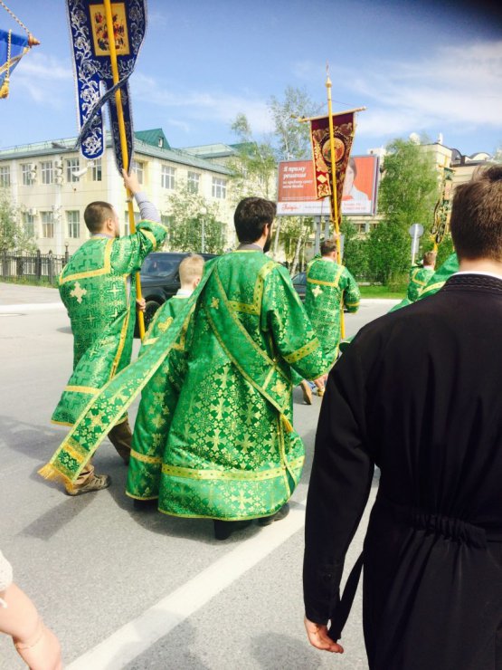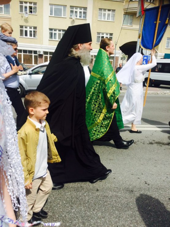 Во время Крестного хода окропление святой водой совершал иерей Константин Мемячкин. По окончанию Крестного хода все прихожане приложились к иконе Святой Троицы в Кафедральном соборе Воскресения Христова.