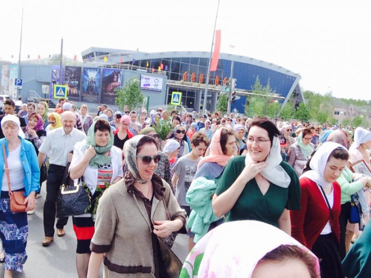 Крестный ход прошествовал от Собора Воскресения Христова до храма Знамения Пресвятой Богородицы. В нём приняло участие около 600 прихожан нашего города.