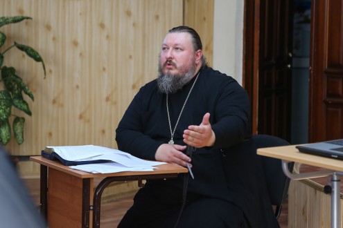 Лекция была прочитана в рамках курсов повышения квалификации экскурсоводов. По окончании лекции иерей Константин Мемячкин ответил на вопросы аудитории