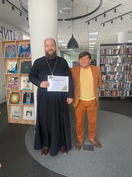 В начале заседания председателю Общества, клирику храма в честь иконы Божией Матери "Знамение" г. Ханты-Мансийска иерею Тарасию Борозенцу было вручено Благодарственное письмо за плодотворное сотрудничество в организации и проведении комплексных мероприятий в рамках проекта "Православная книга в библиотеке" от Государственной библиотеки Югры.