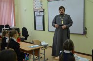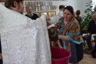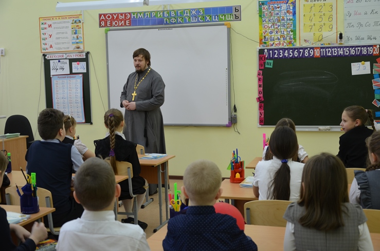 В этот день состоялась встреча настоятеля с учащимися средней общеобразовательной школы п. Выкатной: с учениками младших классов поговорили  о доброте, о любви; с учащимися старших классов  - о чуде  (алтарник Николай Захарович, присутствующий на этой встрече рассказал о чуде, случившемся  в его жизни).