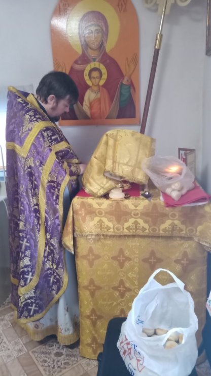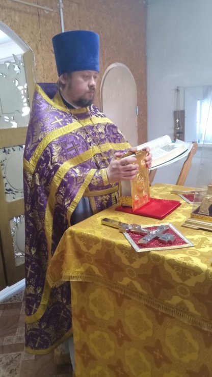 в сопровождении алтарника храма Вторушина О.В. и певчего Кремина Н.В, в миссионерской поездке в поселок Выкатной Ханты-Мансийского района совершил Божественную литургию и соборование в храме «Всех скорбящих Радость». К таинству исповеди приступило 7 человек, а к причастию и соборованию - 6.