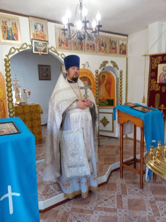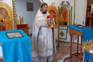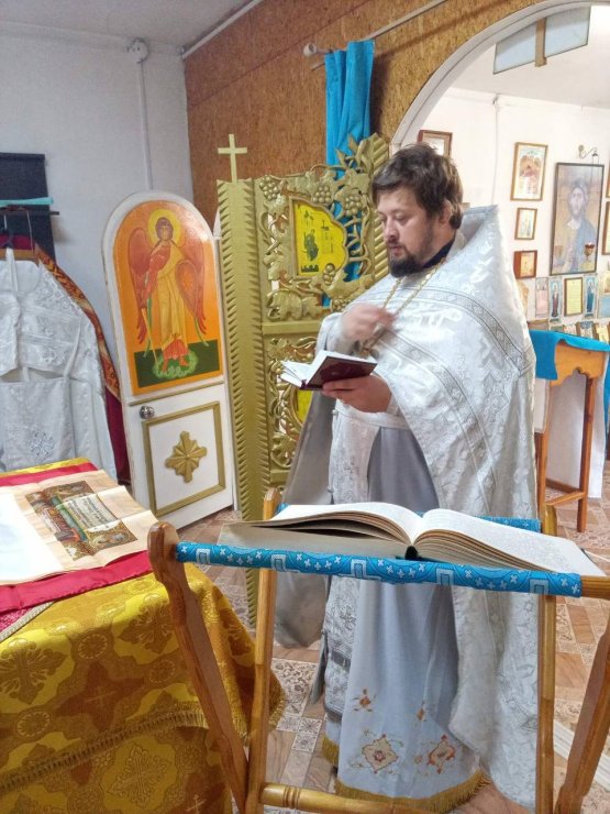 Сопровождал настоятеля алтарник храма Вторушин О.В. В храме в честь иконы Божией Матери «Всех скорбящих Радость» п. Выкатной о. Леонид отслужил Божественную Литургию, за которой исповедалось и причастилось 7 человек. По окончании Литургии батюшка освятил два дома местных жителей.