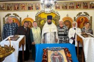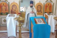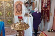 В храме в честь иконы Божией Матери "Всех скорбящих Радость" п. Выкатной отец Леонид совершил Божественную Литургию. За праздничной службой молились прихожане, по окончании которой семь из них исповедались и причастились Святых Христовых Таин.