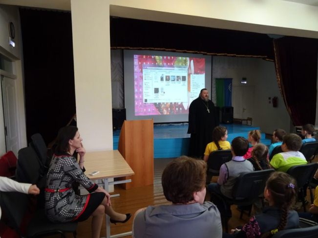 После беседы с учениками была проведена отдельная встреча с педагогами и родителями. Разговор шел об основах Православной веры, о Церковных Таинствах, а также о выборе модуля «Основы Православной культуры».