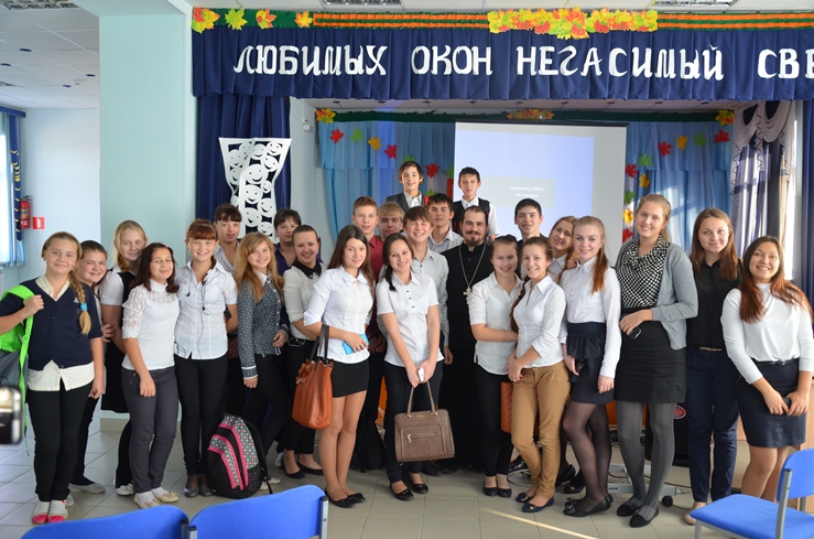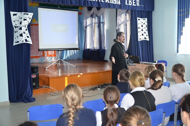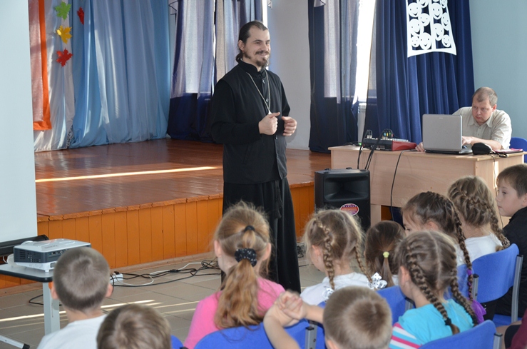 Затем отец Владимир направился в общеобразовательную школу п.Луговской и провел беседы с двумя группами учащихся: с 1 по 5 класс и с 6 по 11 класс.