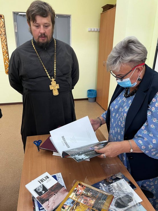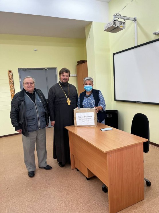 В этот же день, по благословению митрополита Ханты-Мансийского и Сургутского Павла, батюшка передал для школьной библиотеки п. Выкатной православные книги.