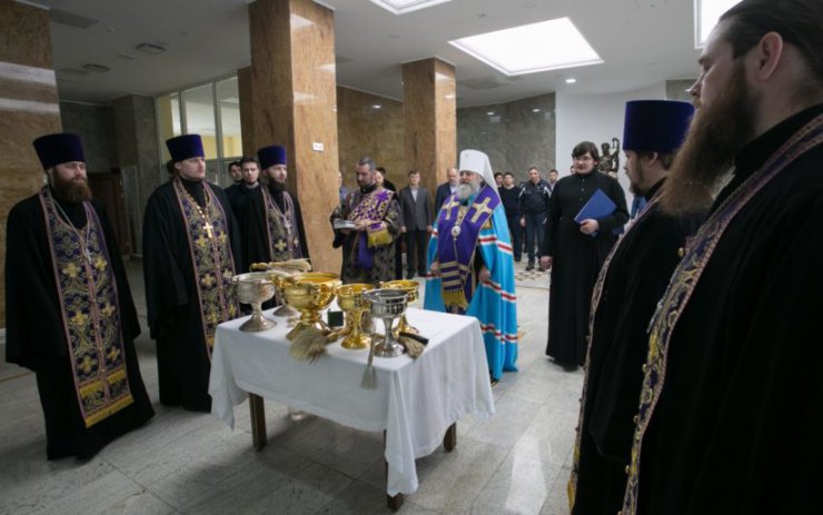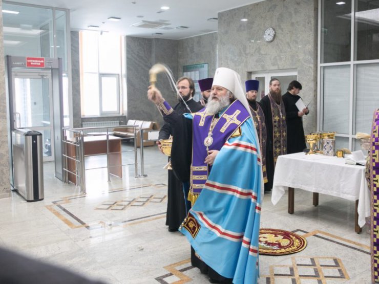Митрополит Павел обратился к собравшимся: «Дорогие братья и сестры, мы с вами собрались, чтобы освятить здание Арбитражного суда, в котором находятся ещё несколько организаций. Как человек приходит в мир, принимая крещение, так и любое здание и строение с Божьего благословения освящается на пользу всем, кто соприкасается с деятельностью этого заведения. Мне хотелось бы вместе с вами вознести молитвы, чтобы Господь преподал своё благословение, освятил, благословил во славу свою и на пользу всем здесь трудящимся и сюда приходящим.»