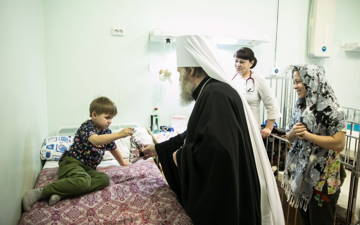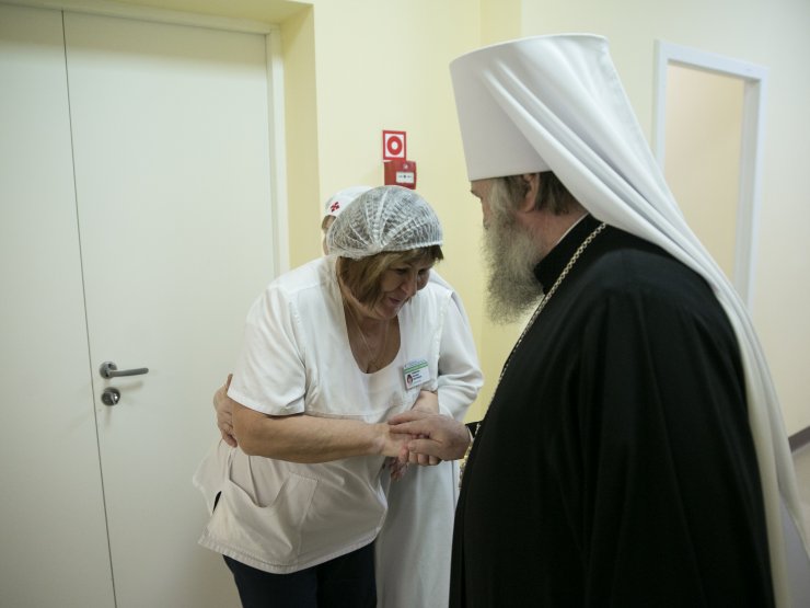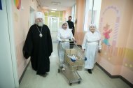 Его Высокопреосвященство сопровождал председатель Отдел социального служения и благотворительности иерей Леонид Бартков, сестры милосердия.